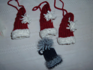 Check out the little elf hats I've been knitting like crazy (sorry the picture sucks, I was tired):
